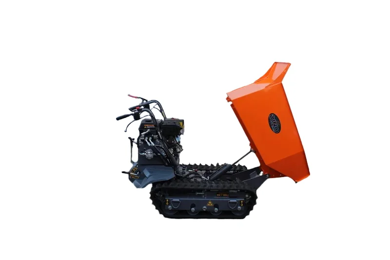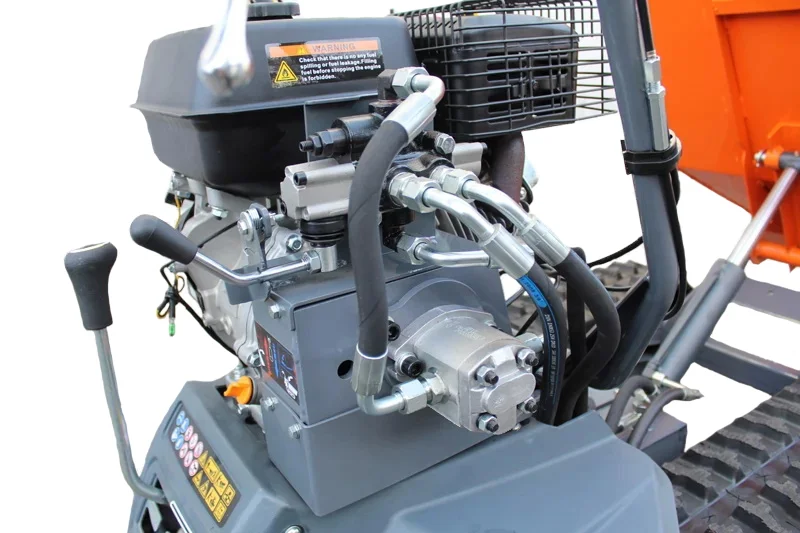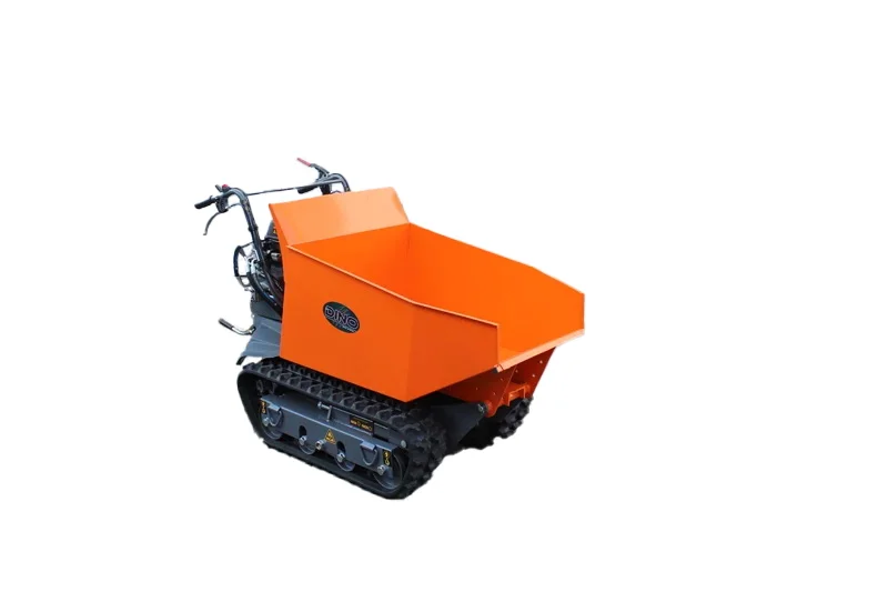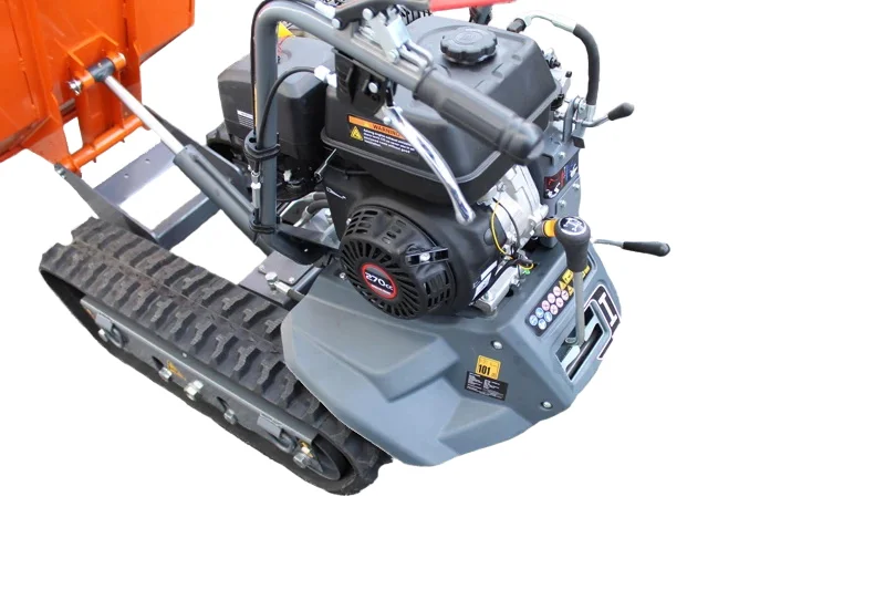 Dieser Raupendumper ist für sehr unwegsames Gelände und Steigungen ausgelegt. Das Schaltgetriebe mit 6 Vorwärts- und 2 Rückwärtsgängen ist mit einer Untersetzung ausgestattet, sodass dem Bediener zum einen 3 Gänge mit hoher Getriebeübersetzung für leichte Fracht und höhere Geschwindigkeit zur Verfügung stehen und zum anderen 3 Gänge mit kleiner Untersetzung für hohe Gewichte und langsame Fahrgeschwindigkeiten. Die große Mulde mit einer Zuladung bis max. 500 kg kann mittels Hebel hydraulisch gekippt werden. Für winterliche Einsätze ist ein Schneeschild als Zubehör erhältlich.